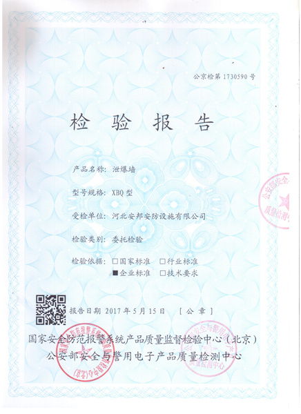 2、生產(chǎn)防爆門需要國(guó)家公安部檢測(cè)頒發(fā)的檢驗(yàn)報(bào)告;