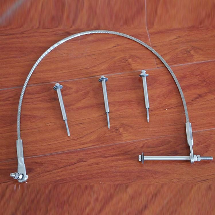 3、巖棉夾芯彩鋼板與墻梁之間用泄爆螺栓固定,泄爆螺栓的型號與數量根據泄爆壓力值選配。當發生事故時,為了不使夾芯彩鋼板亂飛,在巖棉夾芯彩鋼板與墻梁之間采用牽引絞索控制。每塊板設有兩根牽引絞索,其長度為900mm,拉斷力為2000KG。